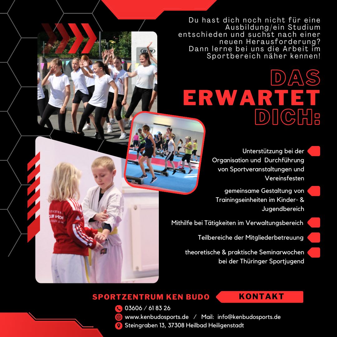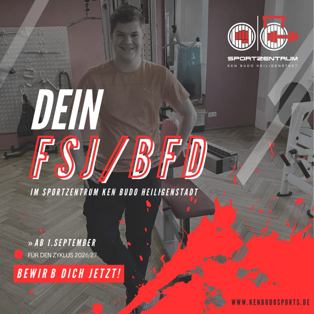 Werde ab September Teil unseres Teams – wir freuen uns ab sofort über deine Bewerbung zum FSJ oder BDF im Sportzentrum Ken Budo Heiligenstadt (Karatekenntnisse sind keine Voraussetzung).